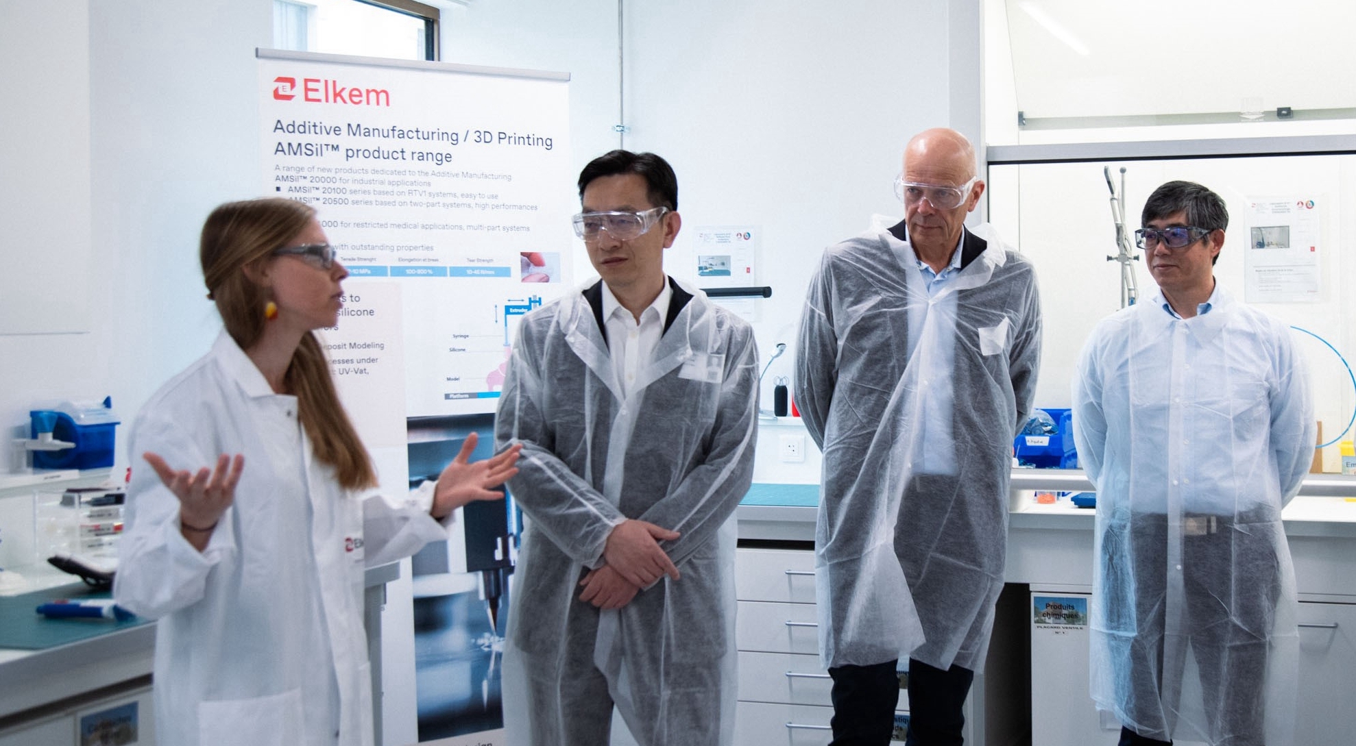 郝志剛實(shí)地參觀了3D打印、產(chǎn)品應(yīng)用開(kāi)發(fā)、分析測(cè)試等實(shí)驗(yàn)室,深入了解了藍(lán)星??嫌袡C(jī)硅在歐洲、中東和非洲地區(qū)的生產(chǎn)經(jīng)營(yíng)情況和發(fā)展戰(zhàn)略,特別是在實(shí)現(xiàn)綠色轉(zhuǎn)型和國(guó)際碳中和目標(biāo)的推動(dòng)下公司的發(fā)展定位?,F(xiàn)場(chǎng)見(jiàn)證了當(dāng)?shù)貓F(tuán)隊(duì)開(kāi)發(fā)的最新產(chǎn)品和創(chuàng)新工藝,并與研發(fā)人員深度溝通,闡明有機(jī)硅應(yīng)用對(duì)現(xiàn)代社會(huì)發(fā)展的重要性,鼓勵(lì)員工研發(fā)更多產(chǎn)品滿足人們對(duì)美好生活的追求。