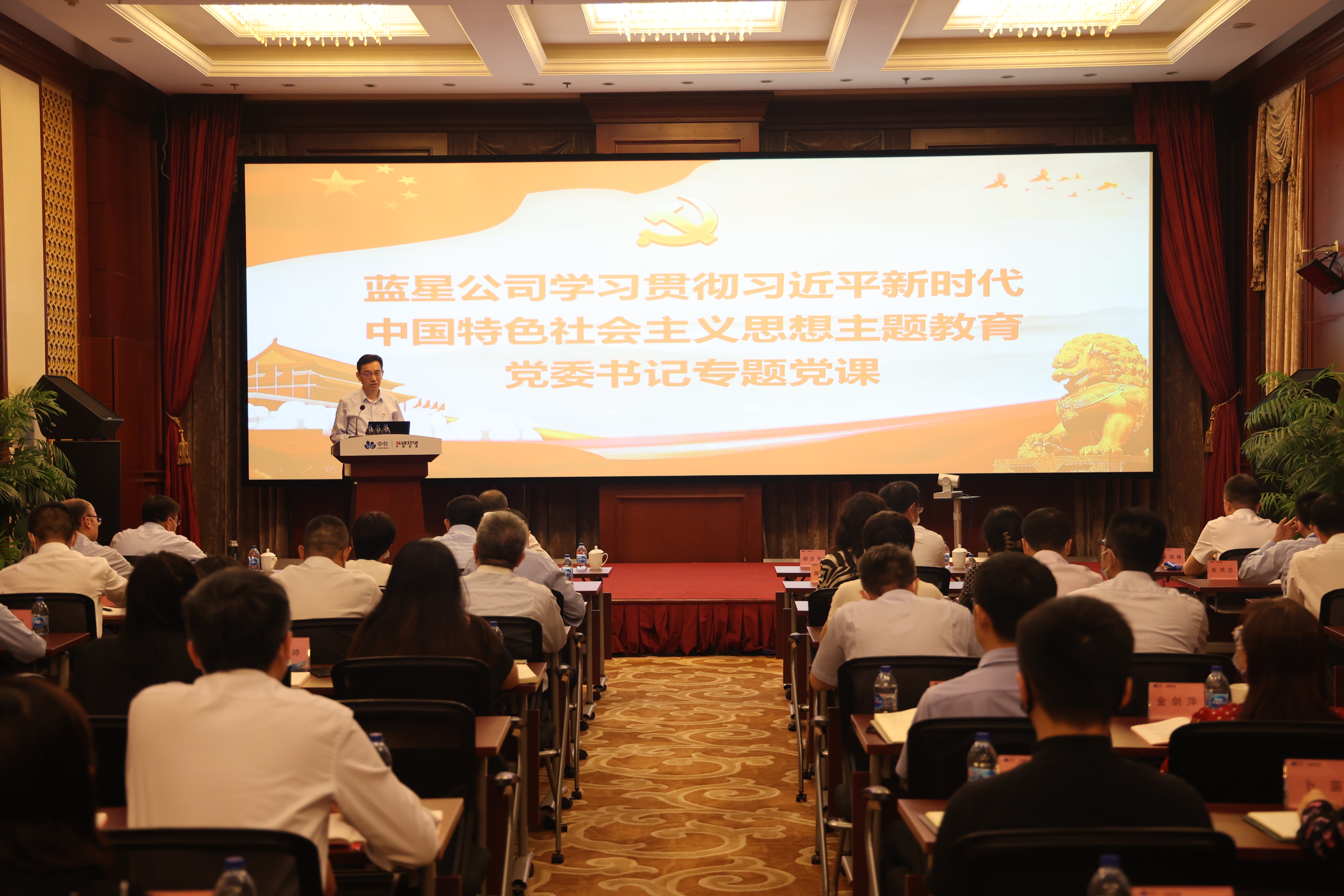 6月5日上午,為推進(jìn)學(xué)習(xí)貫徹習(xí)近平新時(shí)代中國特色社會(huì)主義思想主題教育走深走實(shí),充分發(fā)揮黨委班子表率作用,藍(lán)星公司黨委書記、董事長(zhǎng)郝志剛以《深入領(lǐng)會(huì)習(xí)近平新時(shí)代中國特色社會(huì)主義思想,全力建設(shè)世界一流化工企業(yè)》為題,為廣大黨員干部講了一堂生動(dòng)的主題教育專題黨課。藍(lán)星公司黨委副書記、副總經(jīng)理董大川主持,藍(lán)星公司總部全體員工、直屬企業(yè)領(lǐng)導(dǎo)班子、部門主要負(fù)責(zé)人、各支部委員以及黨群、人力、紀(jì)檢、巡察等部門相關(guān)人員共計(jì)323人分別在主會(huì)場(chǎng)和視頻分會(huì)場(chǎng)參加學(xué)習(xí)。