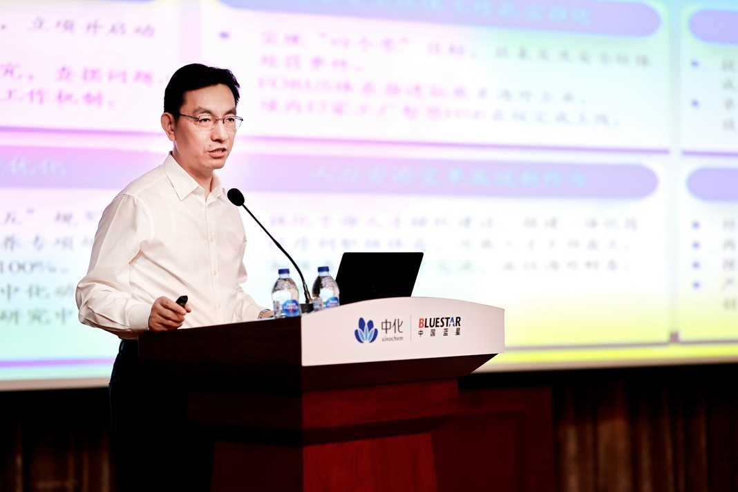 7月27日,藍星公司在京召開2023年中工作會議。會議以習近平新時代中國特色社會主義思想為指導,認真貫徹落實中國中化年中工作會議精神,總結(jié)上半年工作情況,結(jié)合當前經(jīng)濟形勢,部署下半年重點工作。